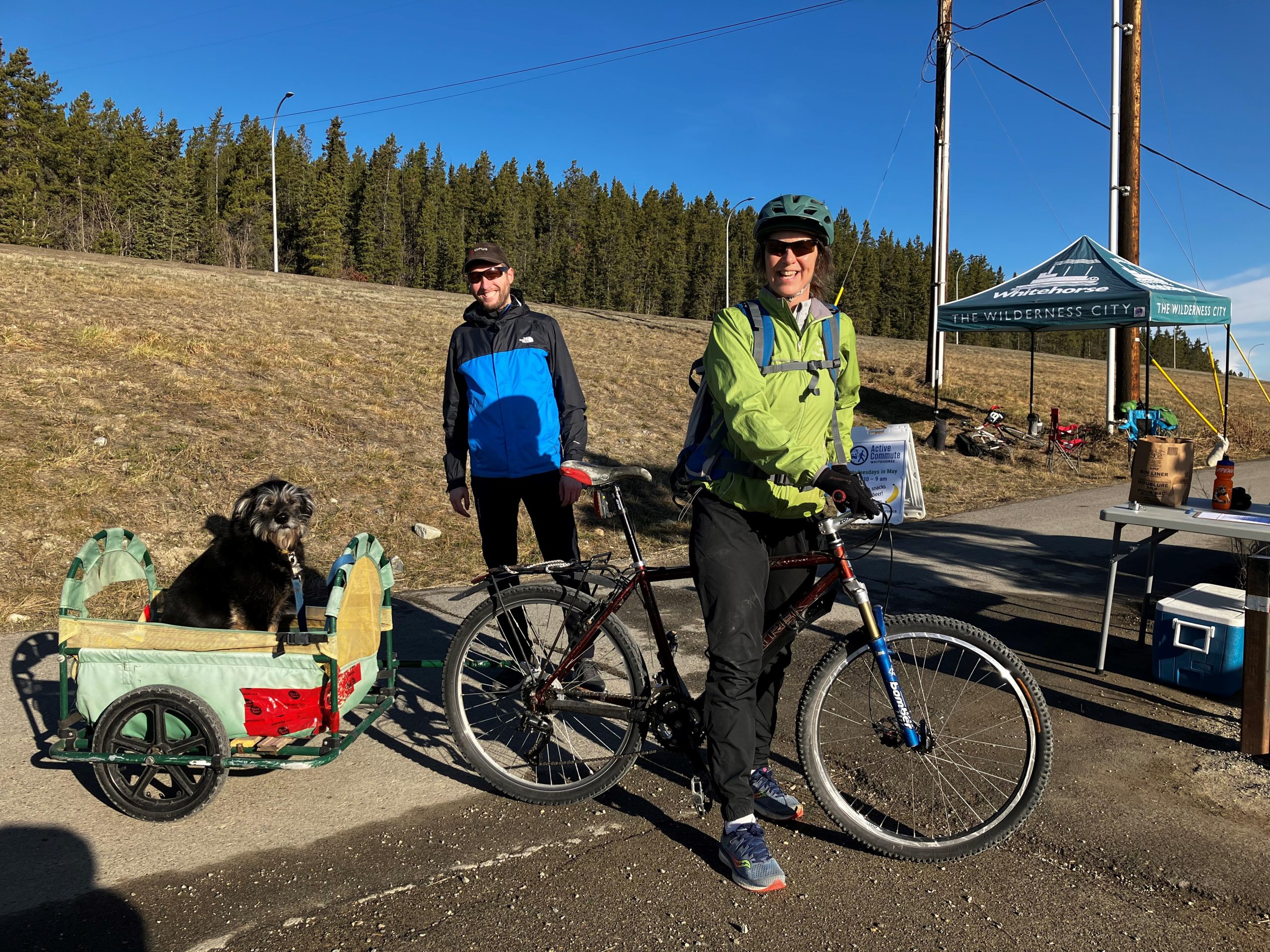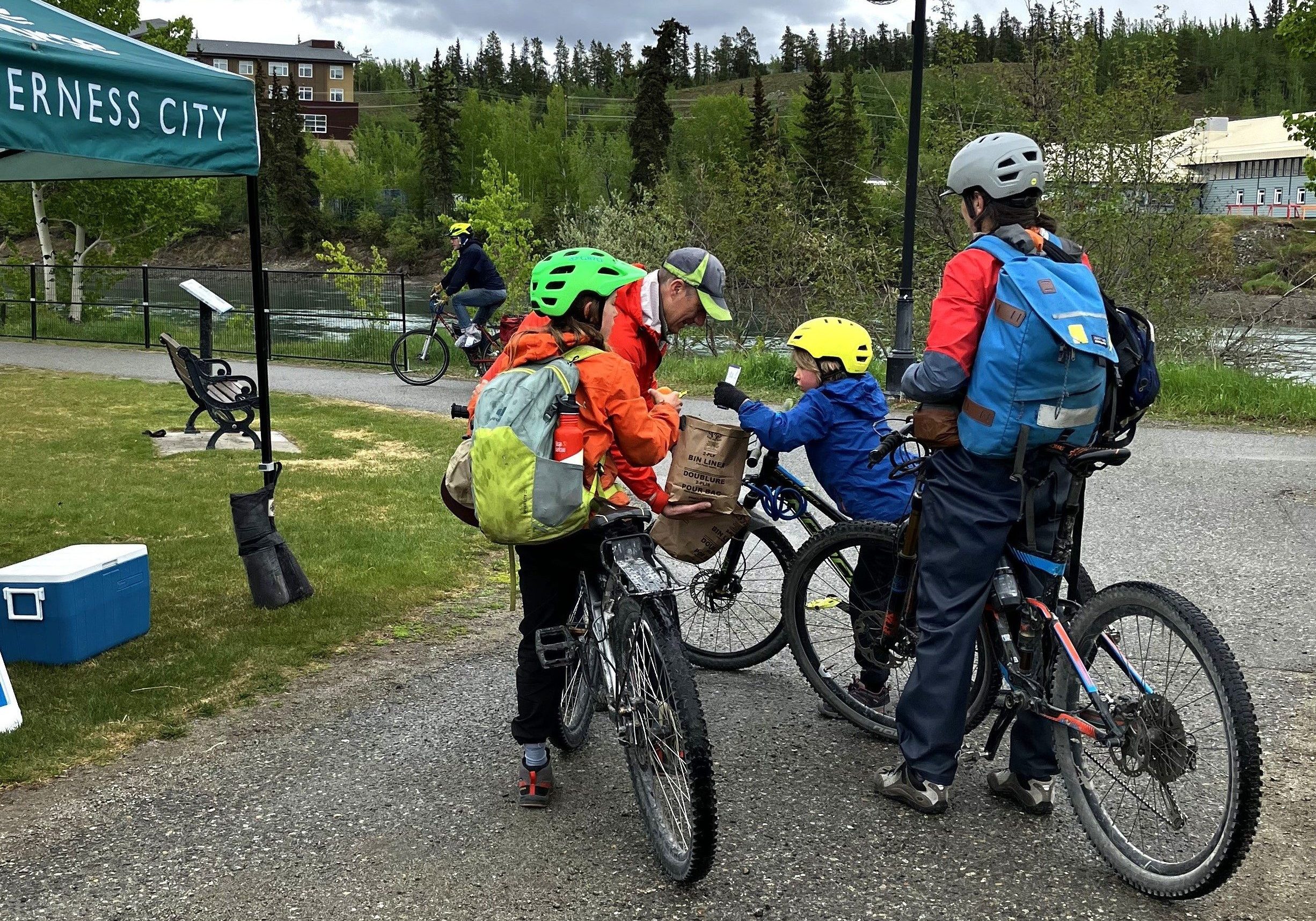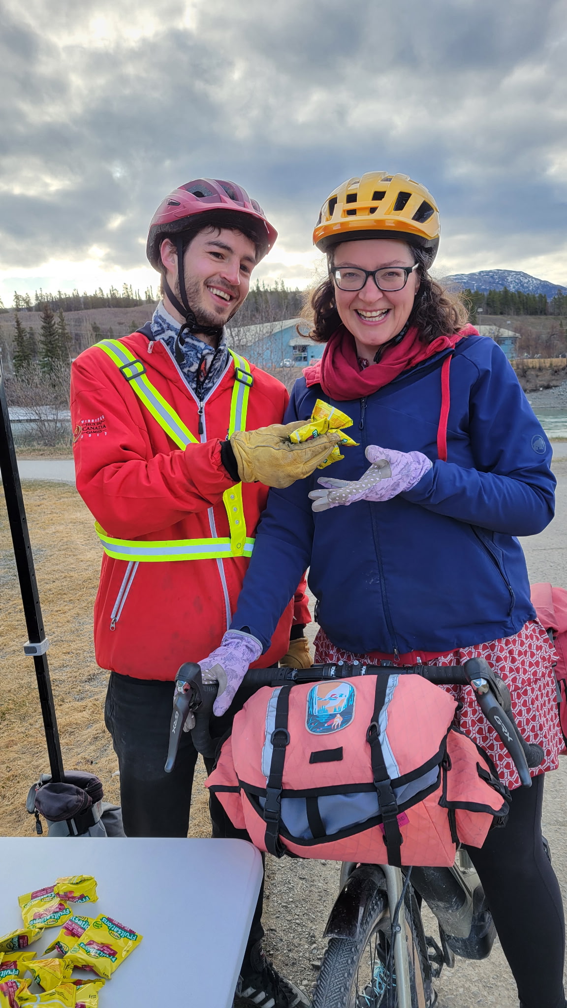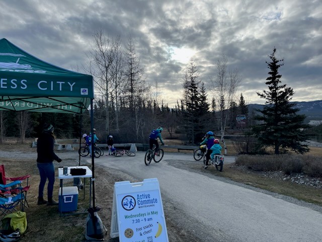 Cool morning active commuters at Two Mile Hill Trail support station - May 7.