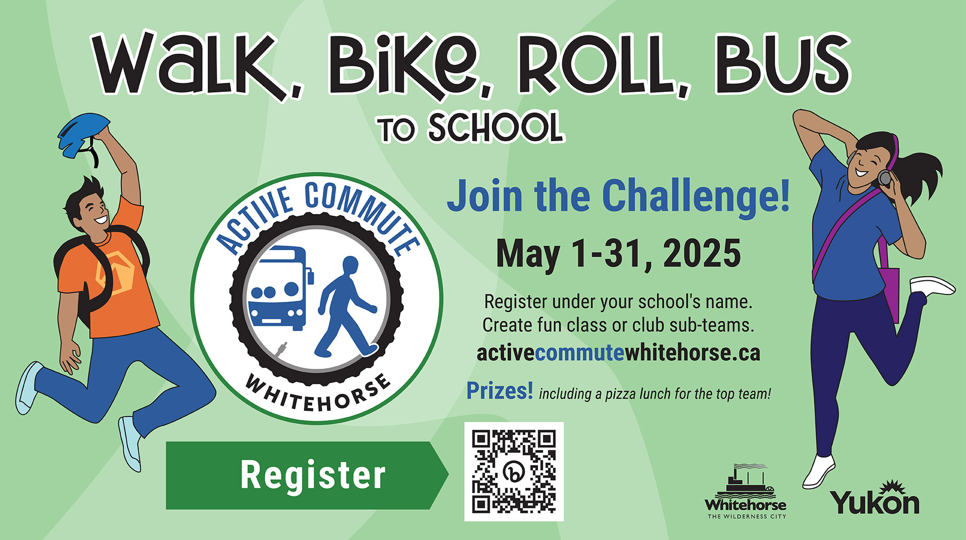 This May 2025, Whitehorse schools are invited to participate in Active Commute Month — a friendly challenge that encourages students, teachers, and families to walk, bike, roll, or bus to school at least 3 times per week. Let’s move toward a healthier body, planet, and a stronger school community!
